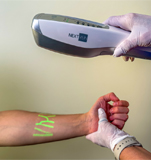 This vein finder emits 850nm near-infrared light that penetrates tissue to highlight veins below the surface, helping to set up an IV line without the need for a tourniquet.