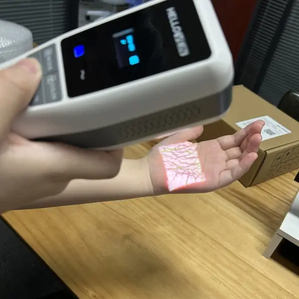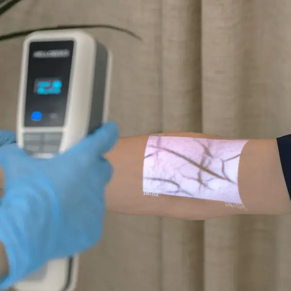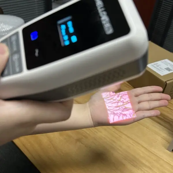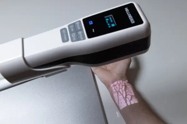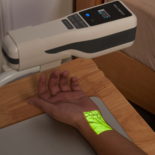 Wir lieben es, den Hellovein Venensucher in unserer Klinik zu haben. Er ist sehr einfach zu bedienen, und die Möglichkeit, die Farbe des Projektors zu ändern, ist besonders hilfreich.