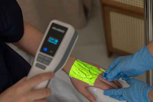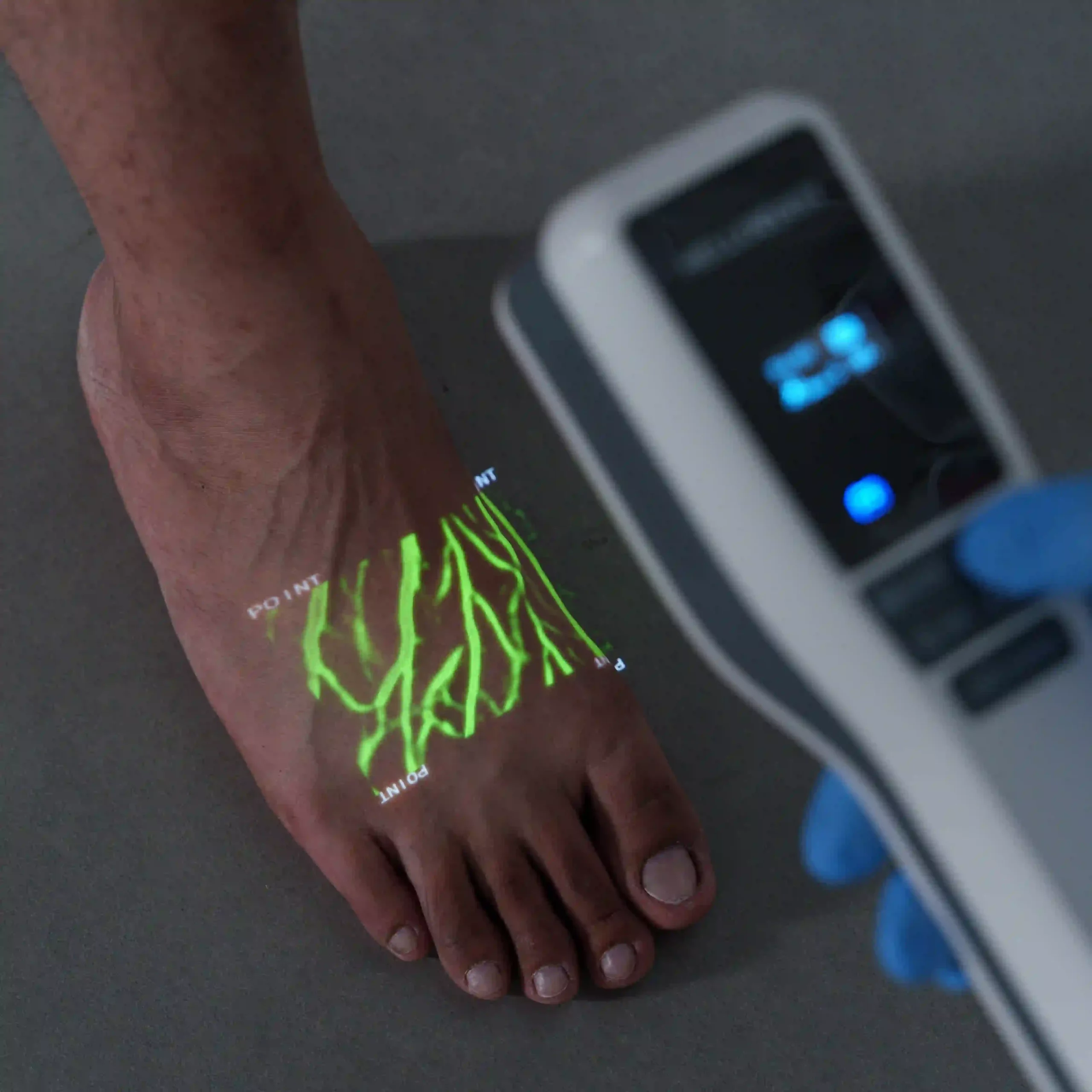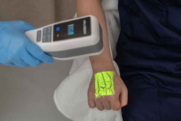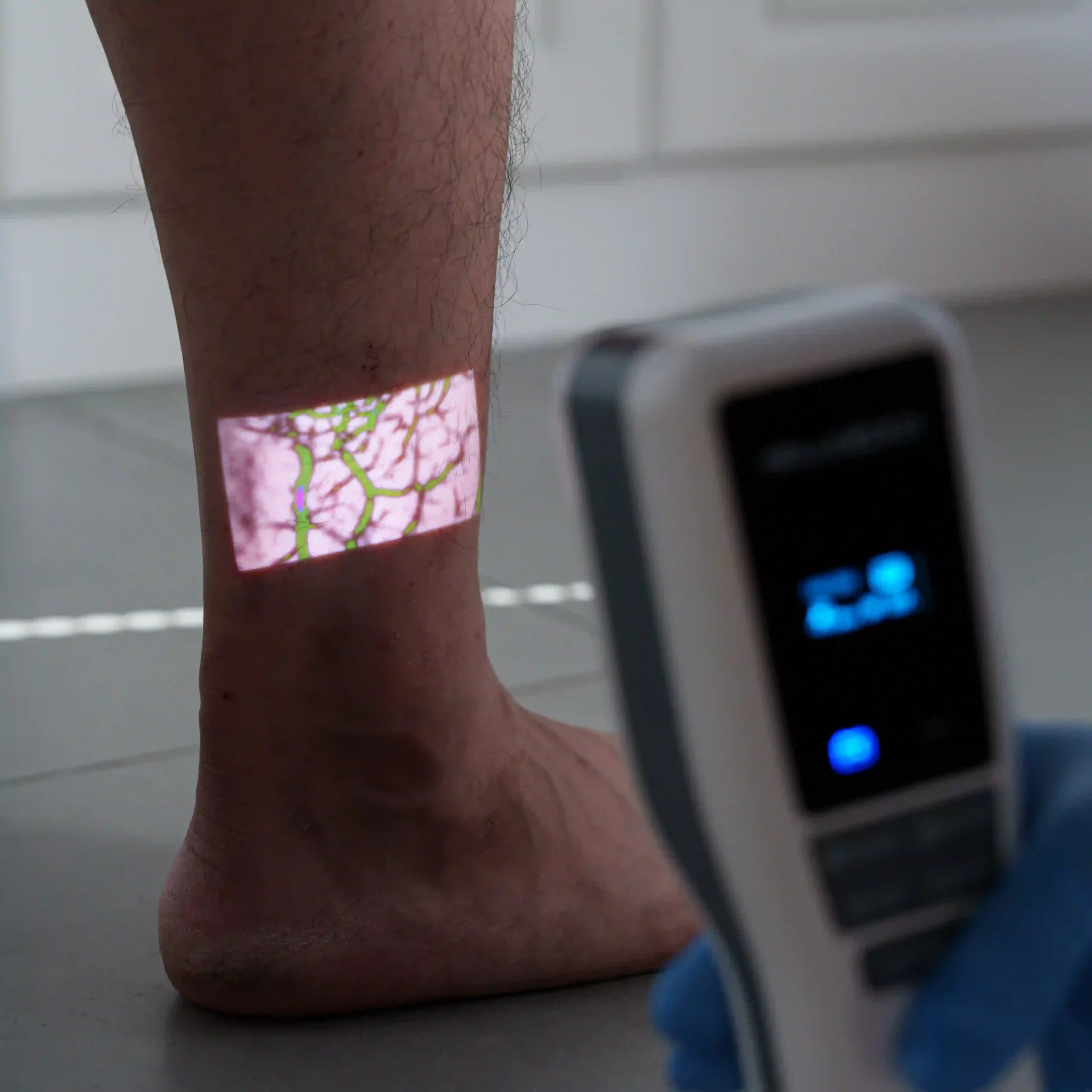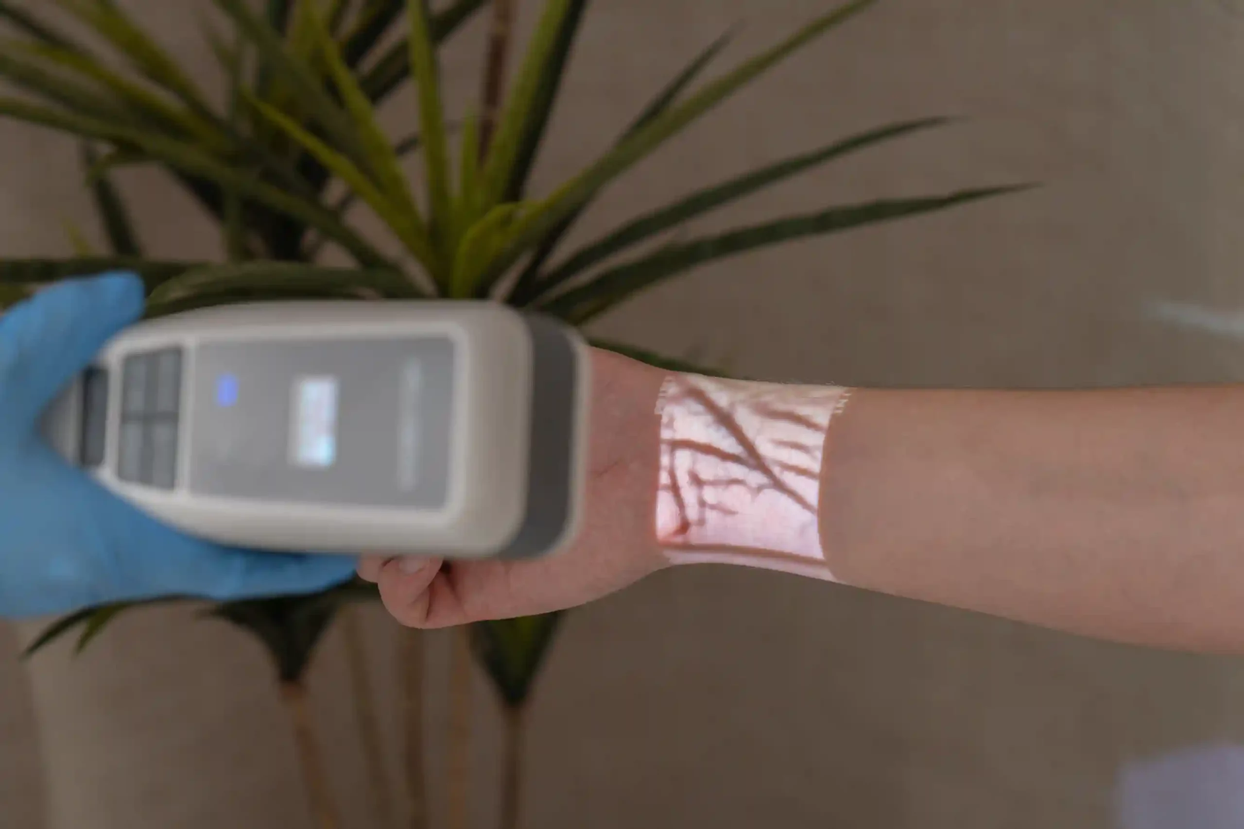 Venen-Bildgebung: Eine neue Methode der Nahinfrarot-Bildgebung, bei der ein verarbeitetes Bild auf die Haut projiziert wird, um die Venenbehandlung zu verbessern