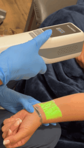 Both Hellovein and Accuvein use advanced near-infrared (NIR) light technology to find veins. They projects a real-time image of the veins onto the patient’s skin, providing healthcare professionals with a clear visual map of the vein patterns.